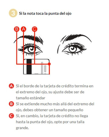 | Grande | La tarjeta no llega hasta la punta del ojo. | Elegí modelos "Large" o con lentes más anchas para mayor cobertura. |