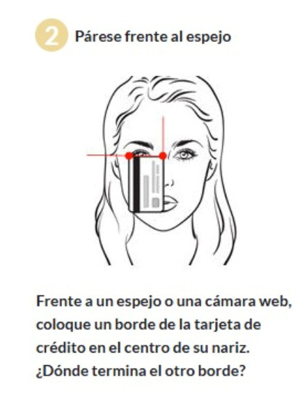 Frente a un espejo o usando la cámara web, colocá el borde de la tarjeta en el centro de tu nariz (justo sobre el puente). Observá dónde termina el otro borde de la tarjeta respecto al extremo del ojo.